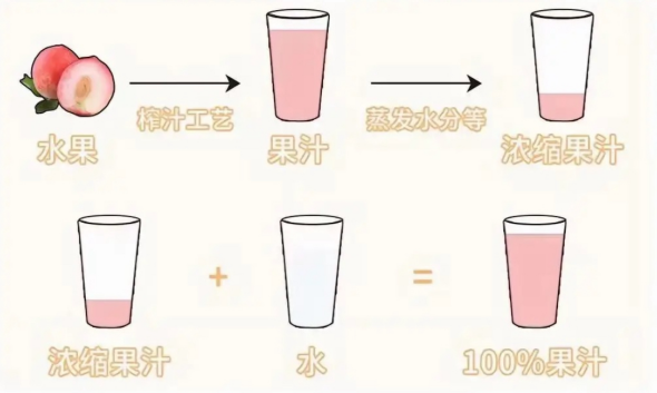 其生產(chǎn)流程涉及將果汁中的水分蒸發(fā),濃縮并制成易保存的形式,再通過添加一定比例的水還原到原有體積。
